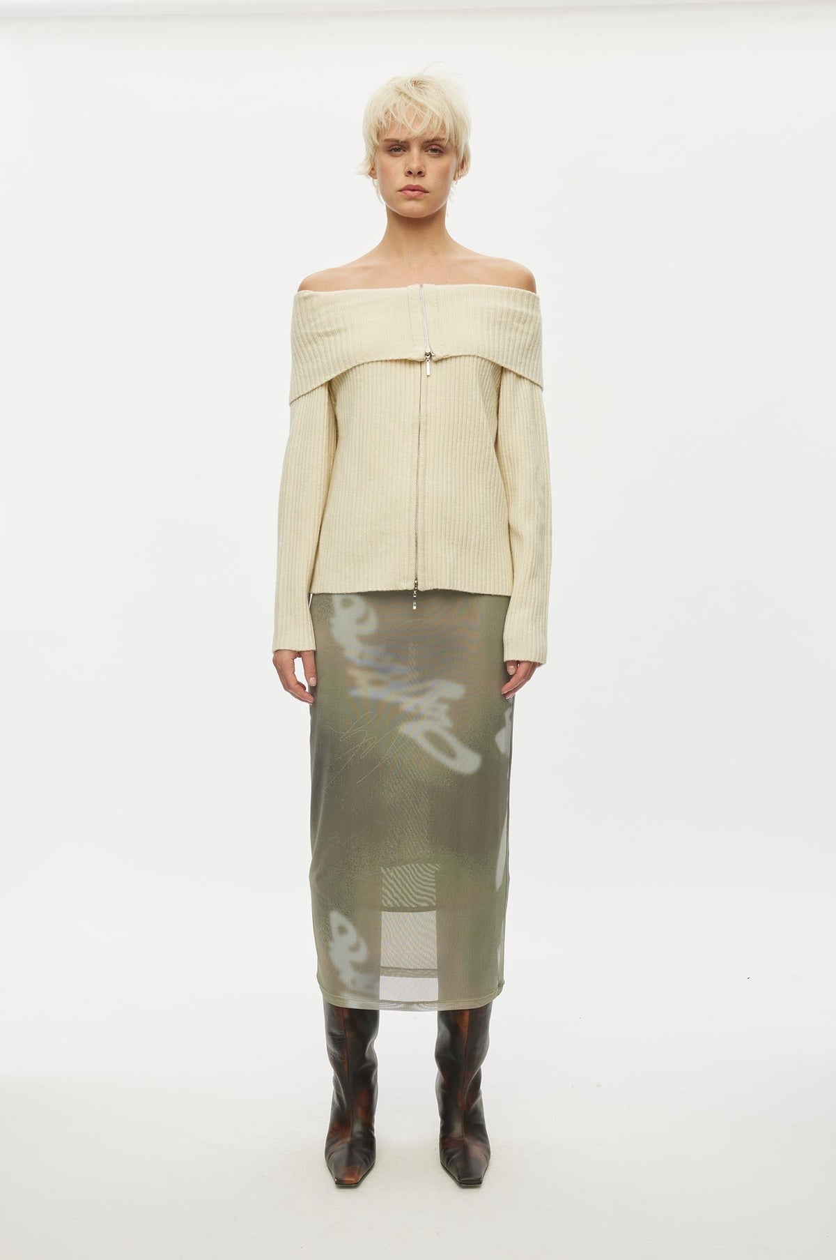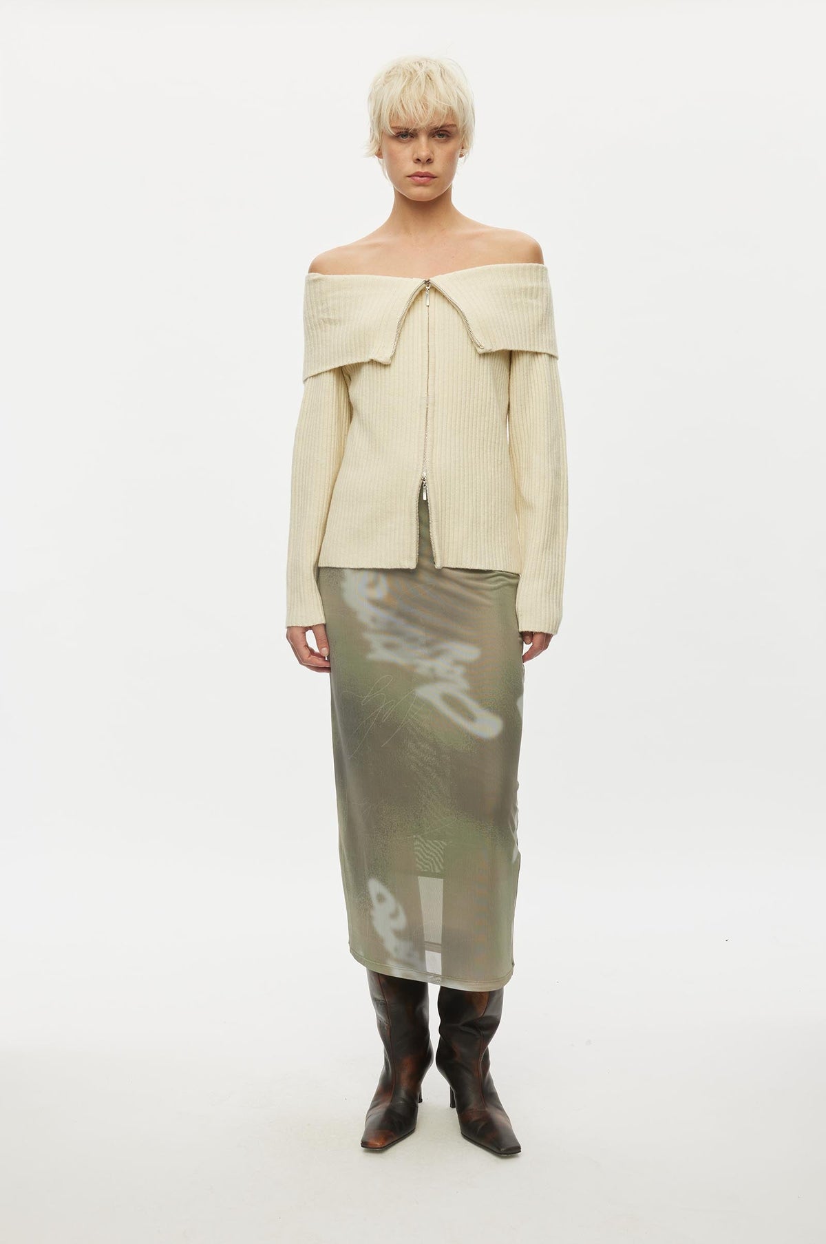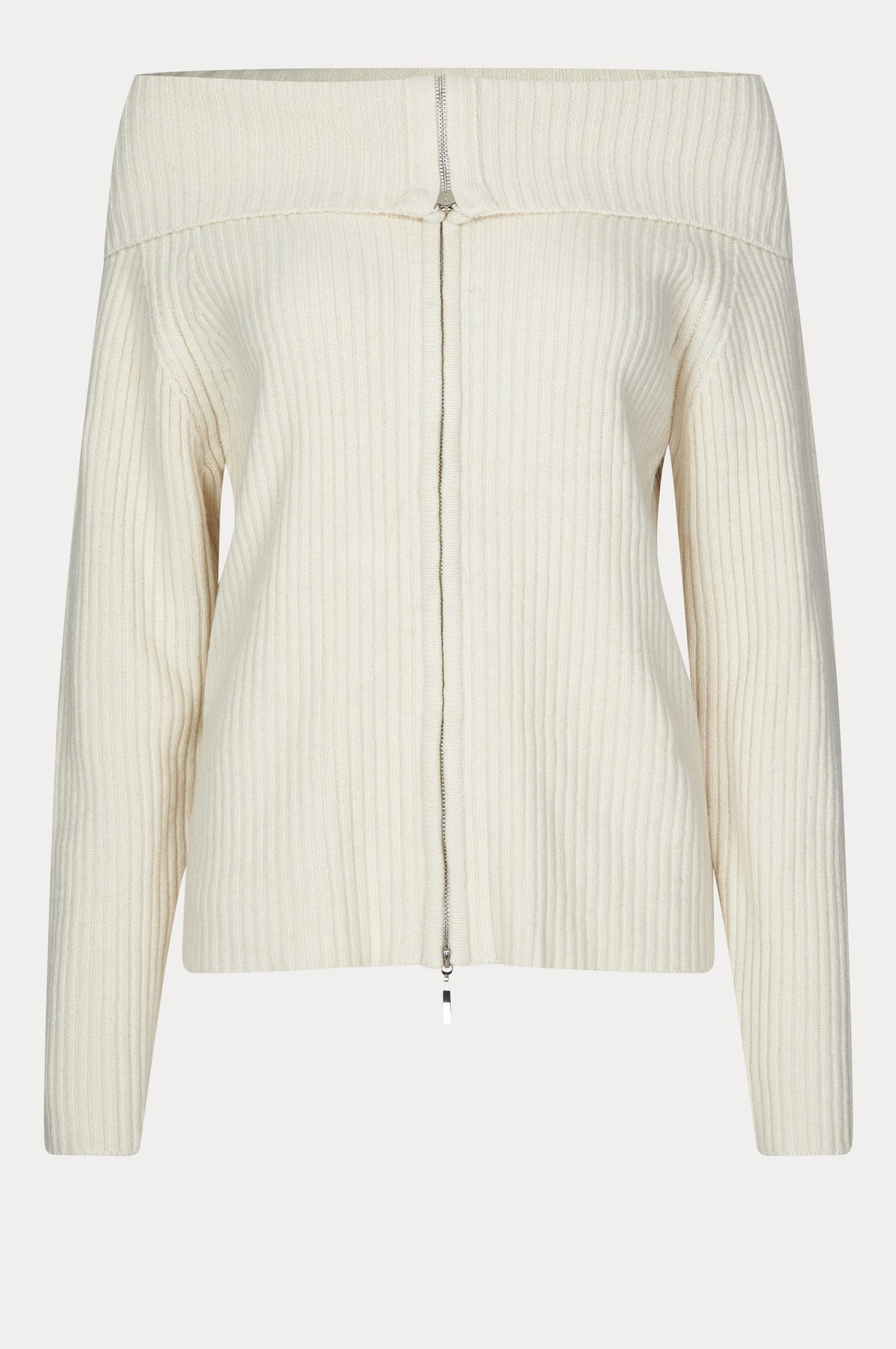 Ribbed zip-through cardigan. Made in a soft and stretchy wool blend with wide ribbed structure. Featuring a wide turtle neck that can be folded over and a metal two-way zip-through fastening. Raglan sleeves. Regular, straight fit.
