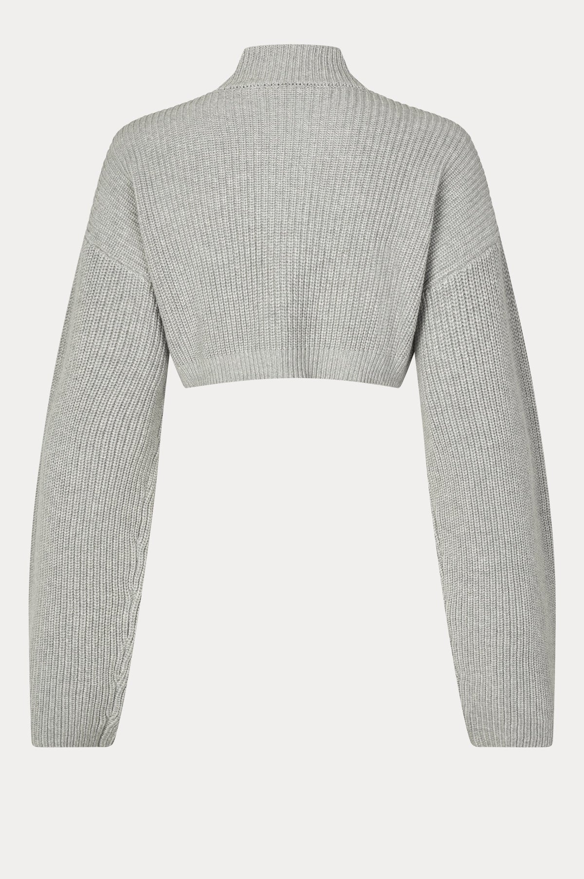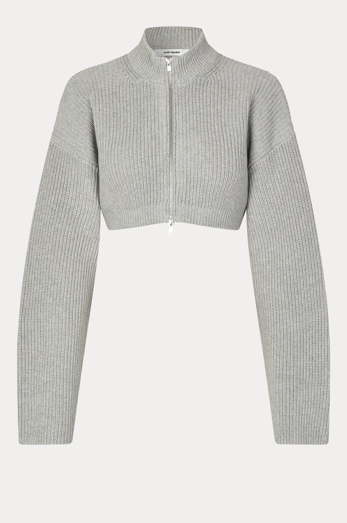 Ribbed zip-up cardigan. Made in soft and stretchy organic cotton with wide ribbed structure. Featuring a round neck and two-way zip-through fastening. Dropped shoulders and extra-long sleeves. Cropped and close fitting.